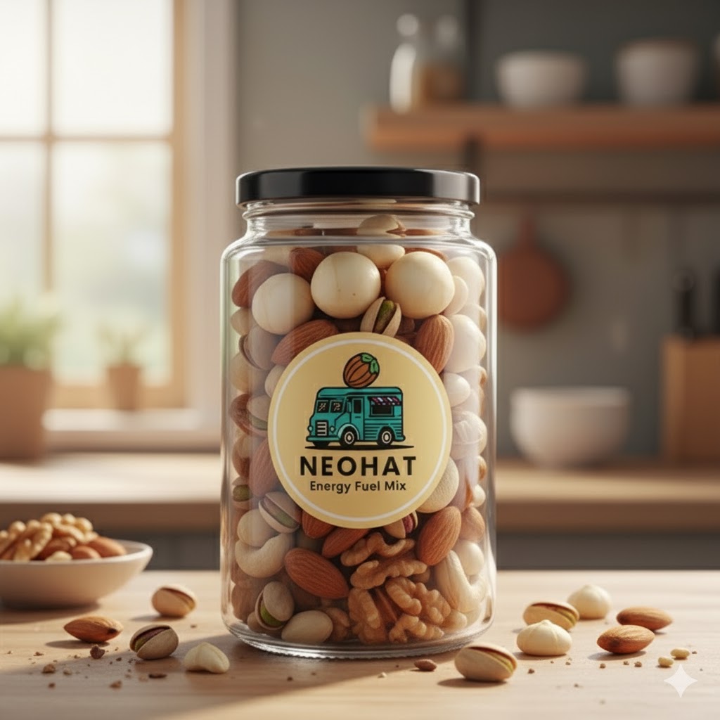 Energy Fuel Mix by NEOHAT is a dynamic blend of raw, nutrient-dense nuts designed to deliver sustained energy and support active lifestyles. Featuring macadamia, almonds, cashews, walnuts, and pistachios, this mix is rich in healthy fats, plant-based protein, and essential minerals that help fuel your body throughout the day.