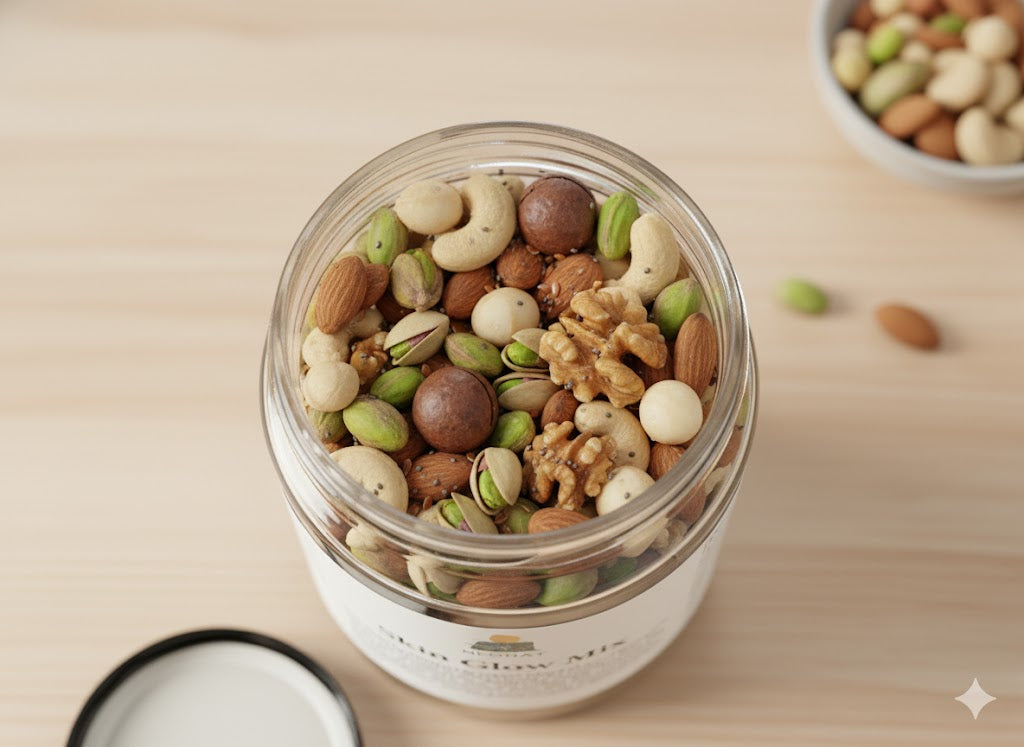 - Cashews: Rich in zinc and selenium, supports skin repair and collagen production